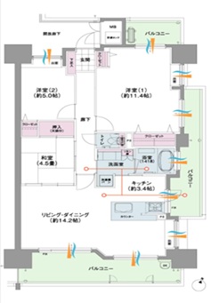 | バルコニー面積 | 18.62㎡(5.63坪) | |||||||||